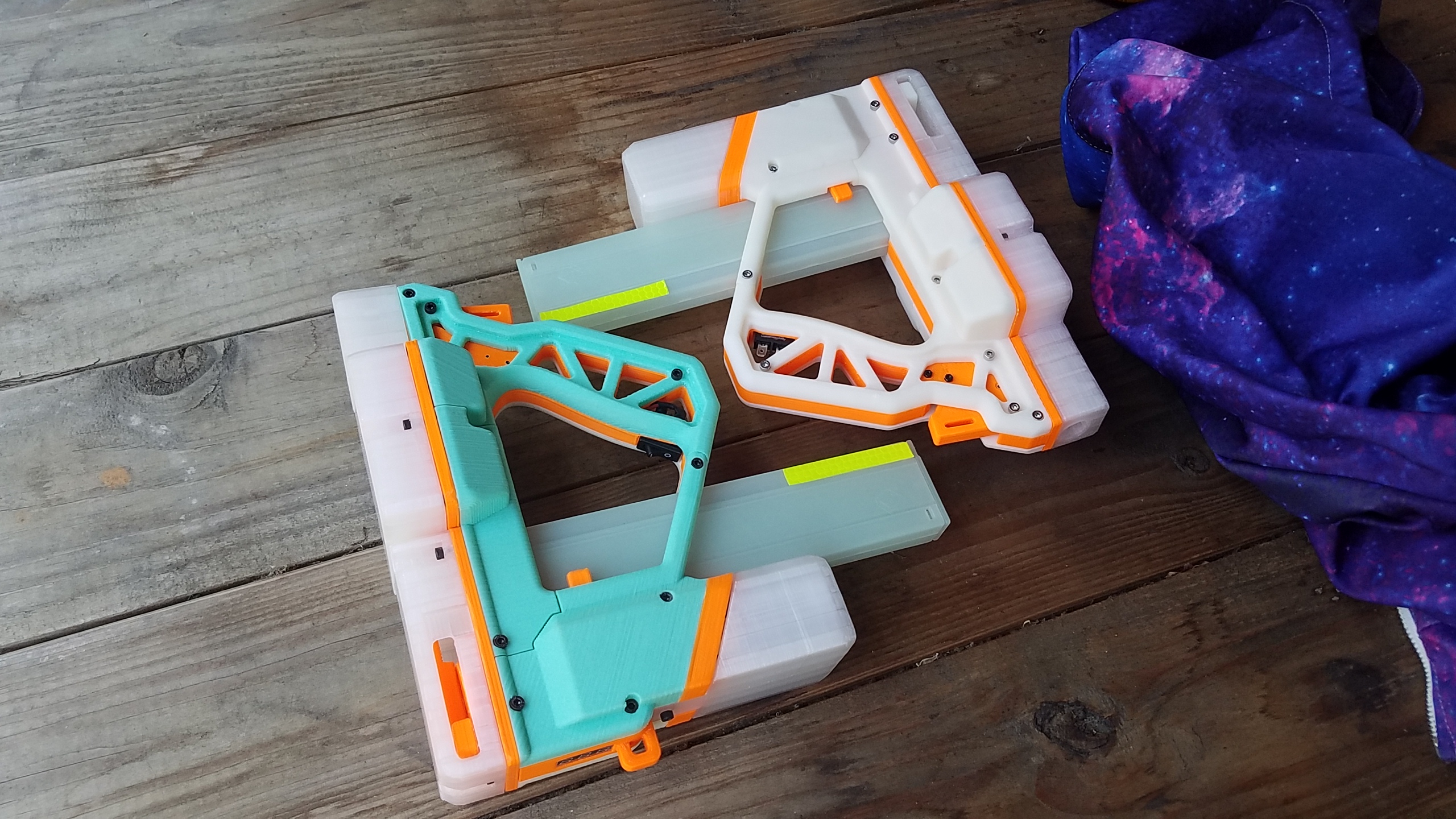 My personal line of homemade competition grade foam blasters. Designed in CAD, 3D printed from the ground up, beta tested with community members, with project files available for free and hardware parts distributed through partner storefronts. My contribution to the ever growing communities of STEM education projects, outdoor sports activities, foam blaster enthusiasts, and functional propmakers.