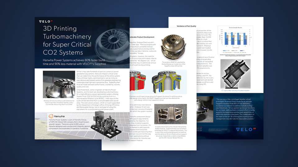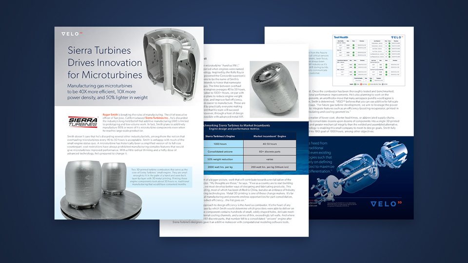 Informational PDF and printed booklets showcasing partner use cases and VELO3D solutions to problematic metal additive printed parts.