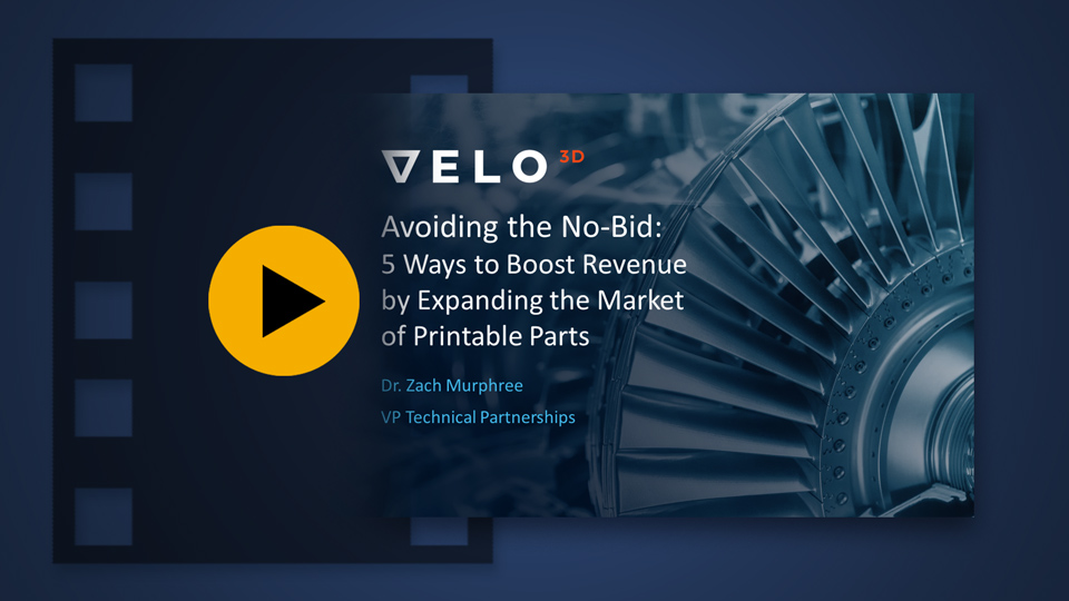 A presentation deck for a recorded webinar highlighting technical limitations of additive manufacturing and VELO3D’s solutions.